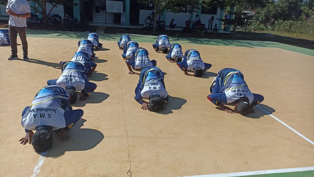 “Walaupun terik matahari membakar kulit kalian, sepatutnya kalian ucap syukur kepada Allah Subhanahu wa ta’ala. Hakikatnya karena Allah kalian bisa bersekolah disini. Banyak orang lain yang tidak bisa melanjutkan jenjang pendidikannya karena terkendala biaya, yang putus sekolah karena terkendala biaya, sewajarnya kalian sujud syukur kepada Allah Subhanahu Wa Ta’ala atas pemberian yang luar biasa ini.” Sambung Pengasuh Yayasan, Hamdin Almurdani, S.Kom.I